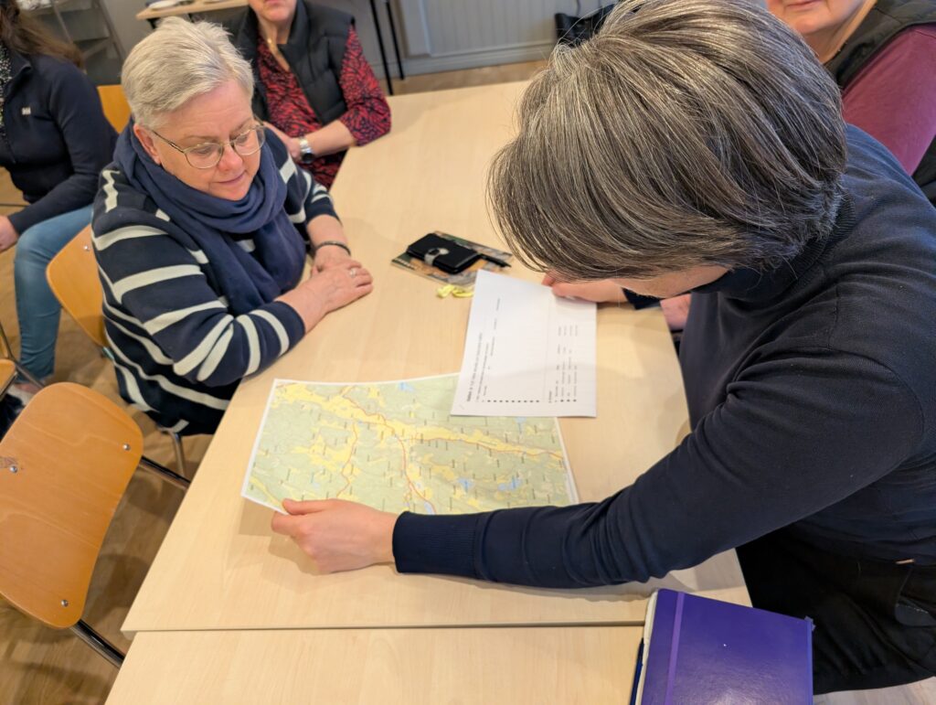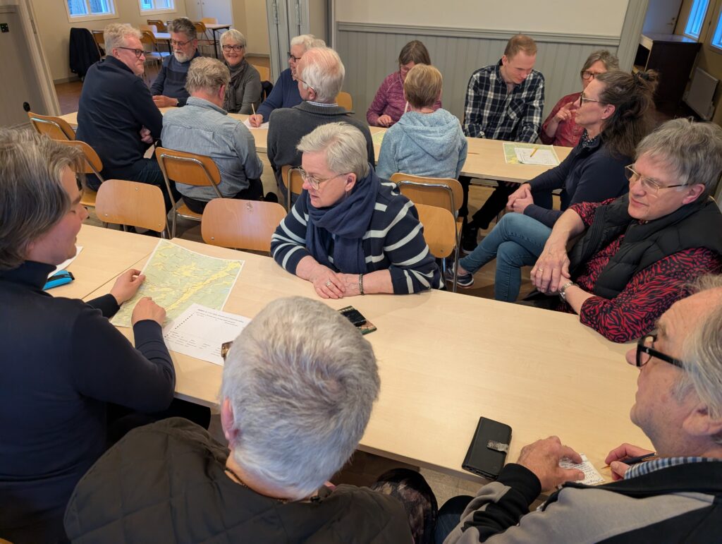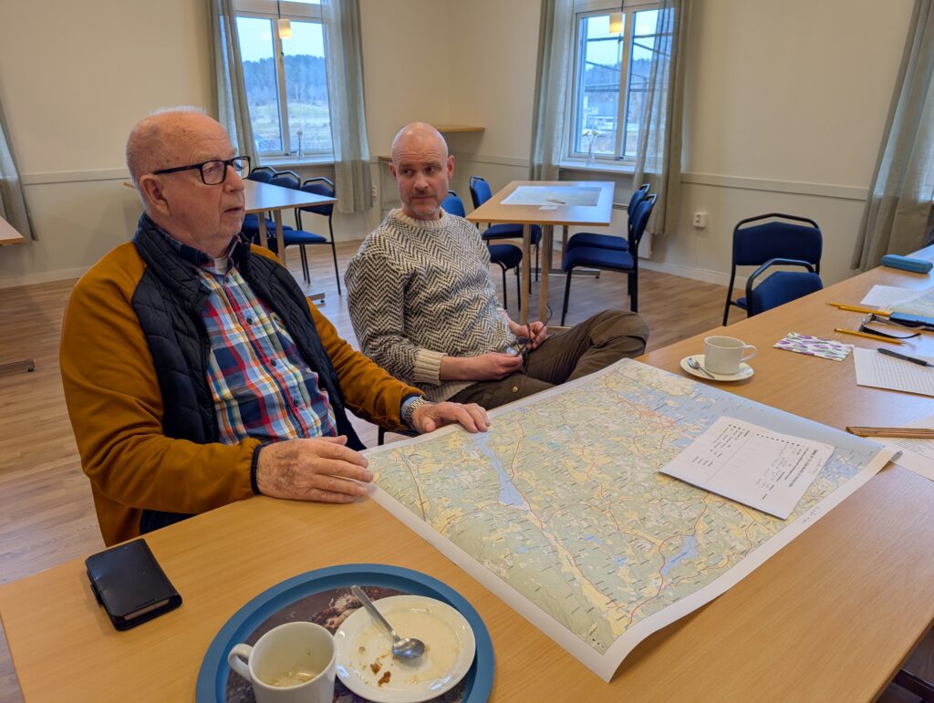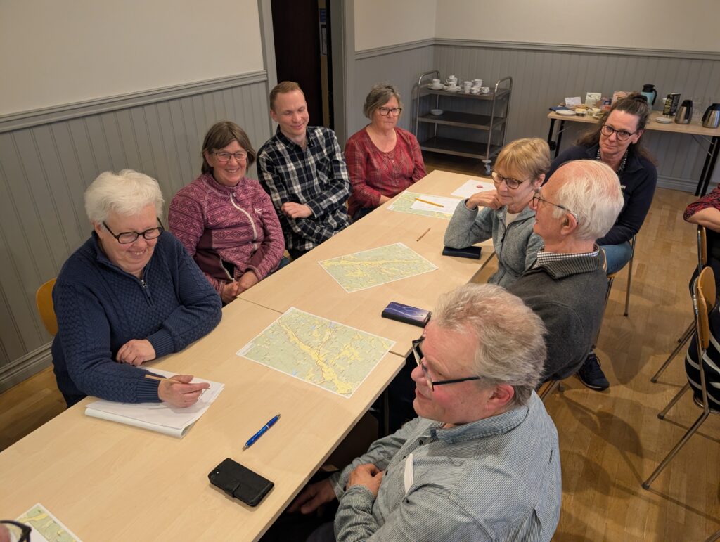 I Bärfendal deltog ett större antal personer, och träffen präglades av ett stort engagemang. Här arbetade deltagarna gemensamt med kartor för att identifiera vattenresurser, odlingsmark och andra viktiga funktioner i området. Samtalen rörde både historiska perspektiv och framtida möjligheter, och visade på den breda kunskap som finns i bygden.